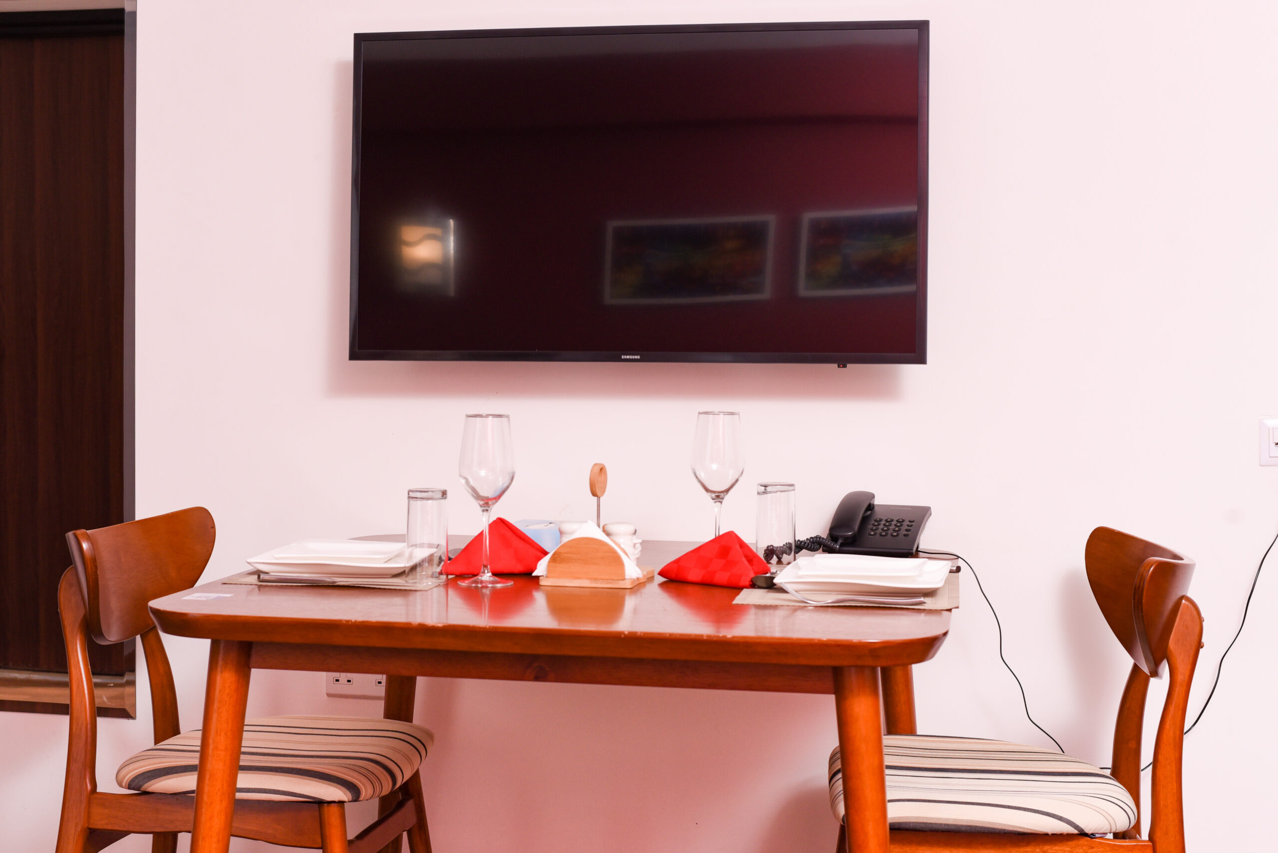 Kitchenette with Fridge, Microwave, Toaster, Kettle & Utensils